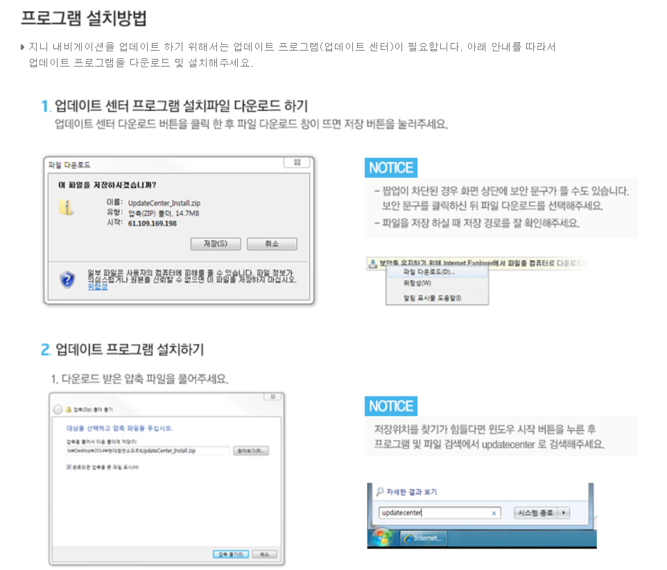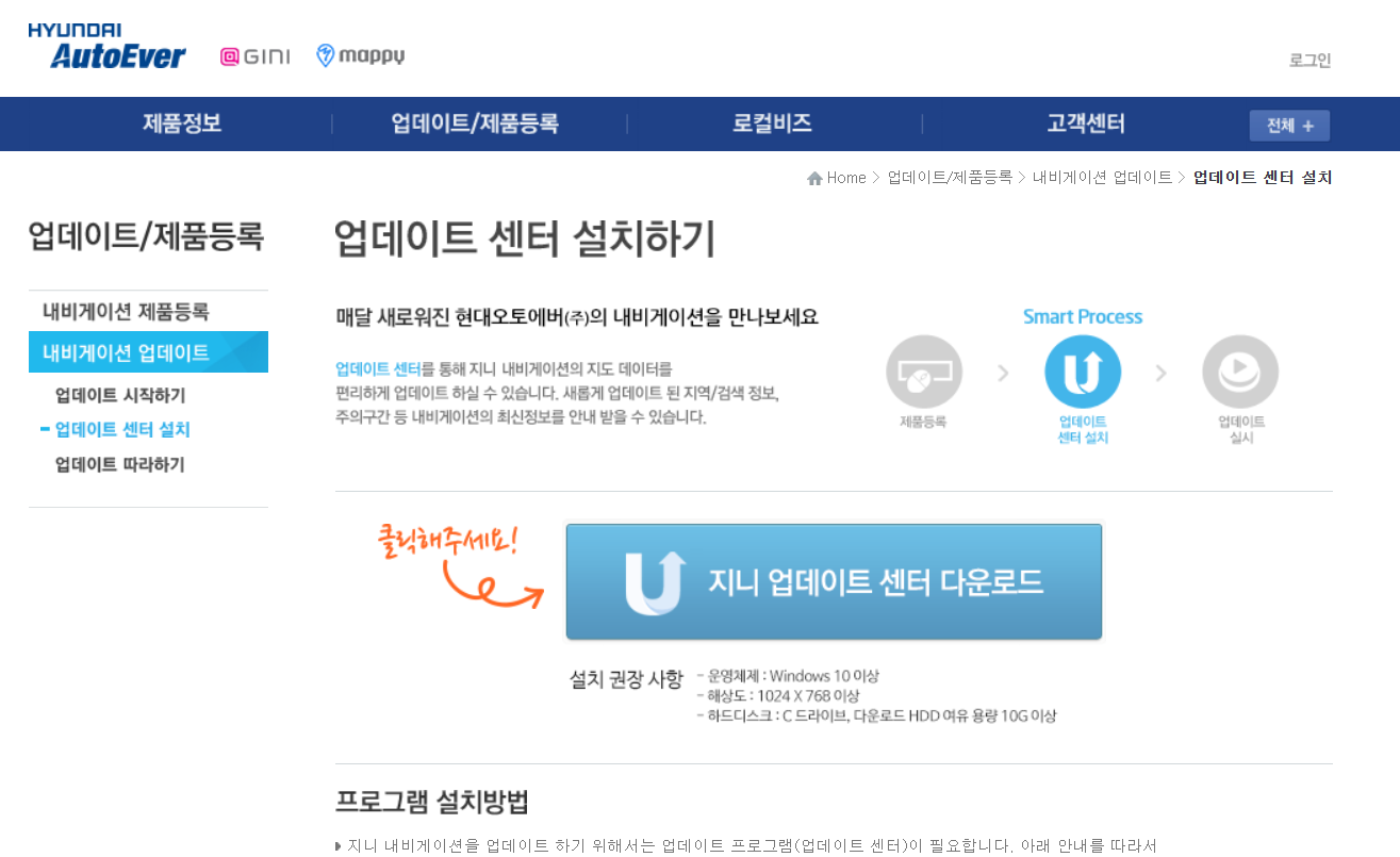 업데이트 센터를 설치해야 최신 내비게이션 소프트웨어를 다운로드할 수 있습니다. 설치 방법은 간단합니다. 먼저, 현대오토에버의 업데이트 센터 다운로드 페이지에 접속하여 '업데이트 센터 다운로드' 버튼을 클릭합니다.